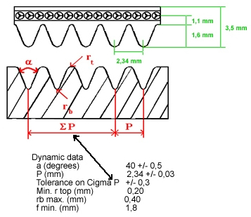 Note that belts reinforced with aramid (Kevlar) do not stretch at all, so when you install such a belt, all the tension is provided by the cover's compression. After the cover takes a set (typically a maximum of about 25% of its thickness), the belt will loosen slightly. Therefore, a belt tensioner is usually required.